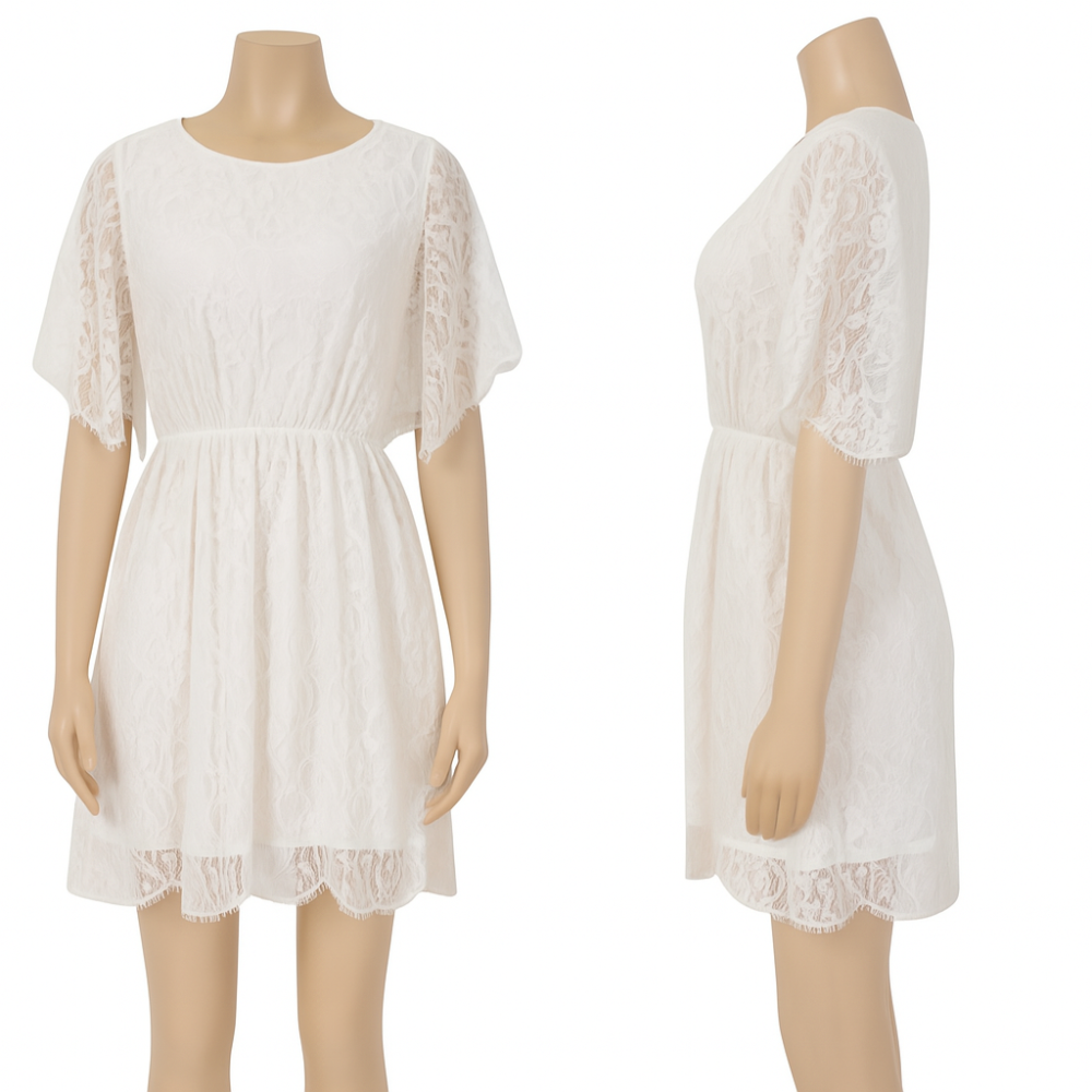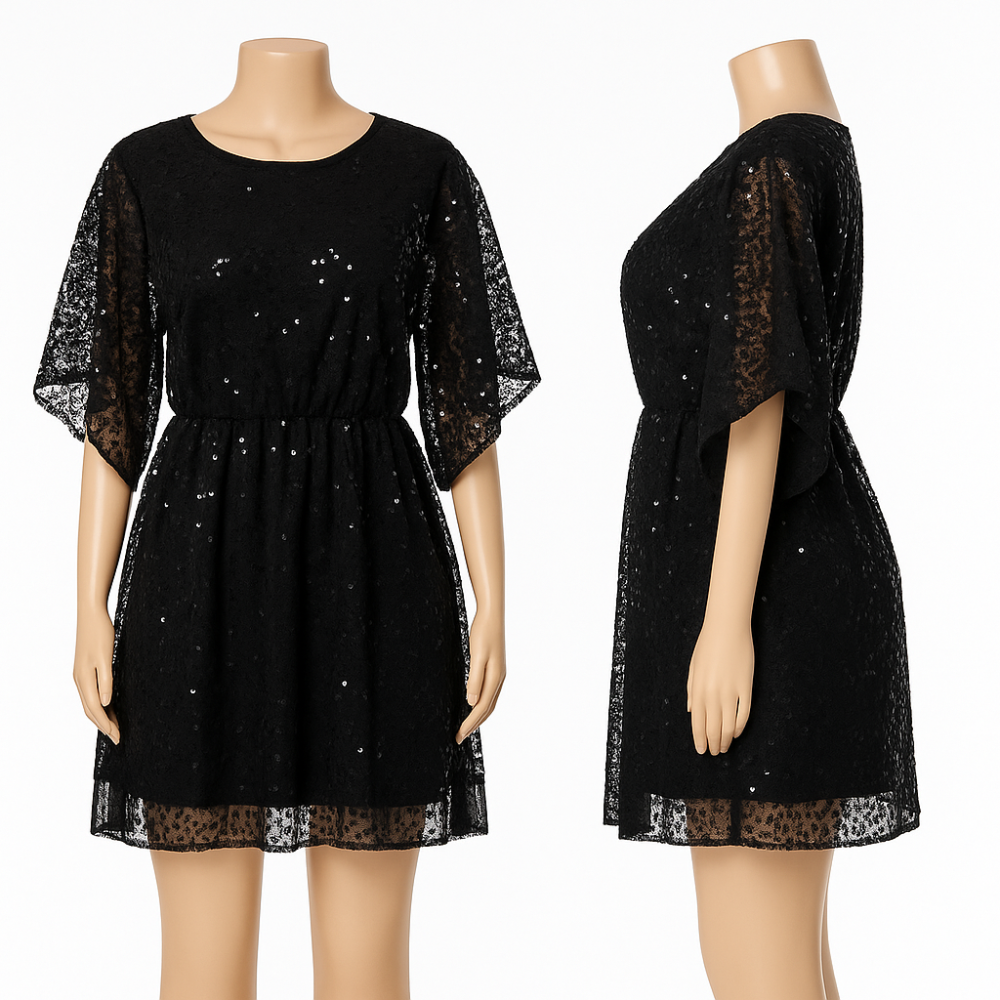 استمتعي بإطلالة ساحرة تخطف الأنظار مع فستان الدانتيل القصير المرصع بالترتر اللامع. تصميم أنثوي بامتياز يجمع بين الأناقة والرقي، مع لمسة عصرية تبرز تفاصيلك الجميلة بكل نعومة.