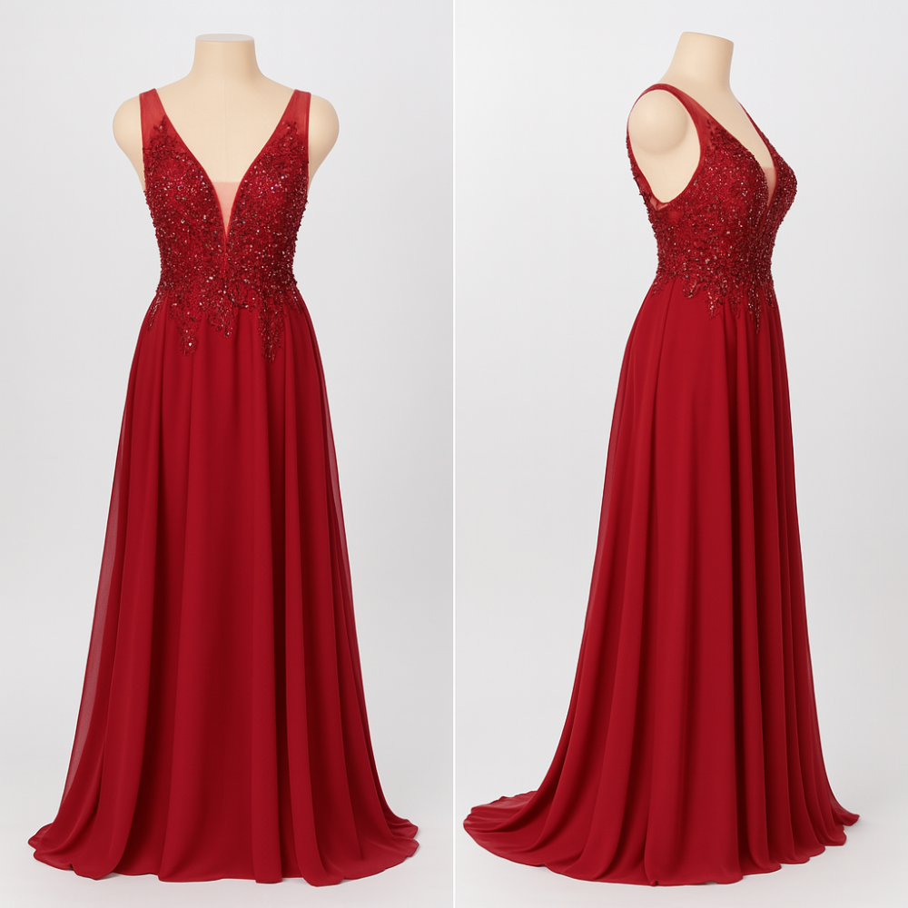 - الياقة والأكتاف: ياقة V أنيقة مع أكتاف عارية تعزز إطلالة أنثوية متوازنة بين الجاذبية والاحتشام.